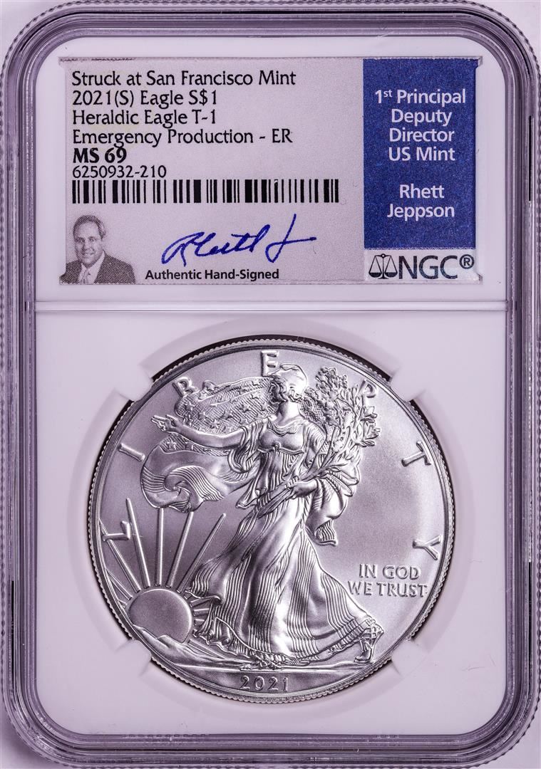 2021(S) Ty. 1 $1 American Silver Eagle Coin NGC MS69 Jeppson Signed Emergency Release