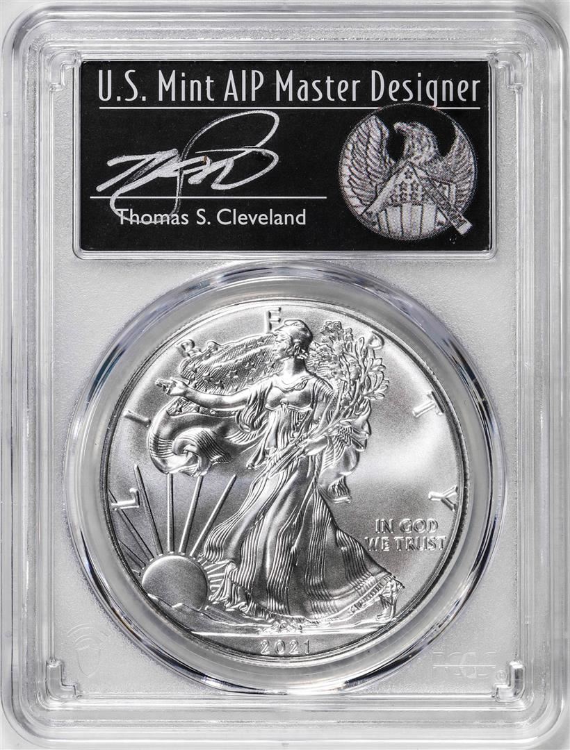 2021-(S) Ty. 1 $1 American Silver Eagle Coin PCGS MS70 Cleveland Signature FDOI