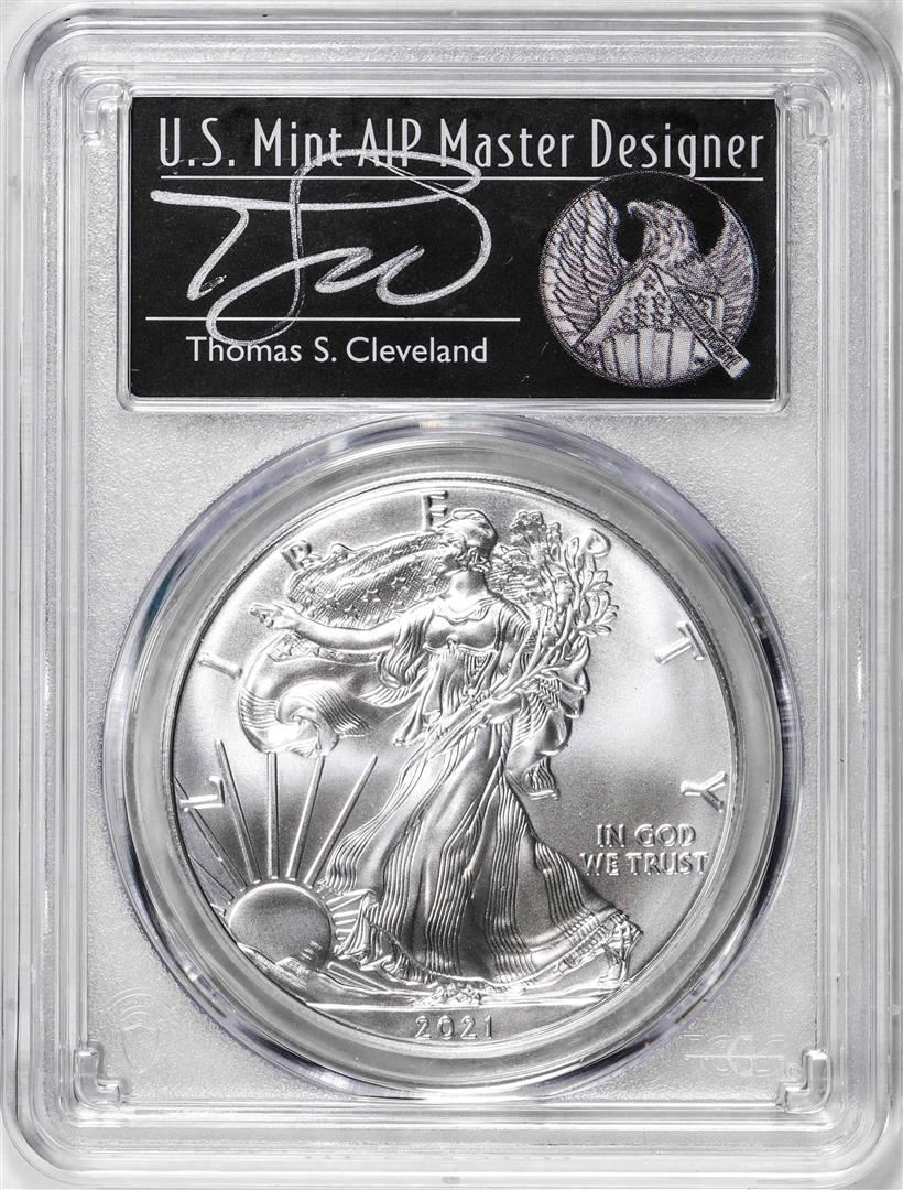 2021-(S) Ty. 1 $1 American Silver Eagle Coin PCGS MS70 Cleveland Signed San Francisco