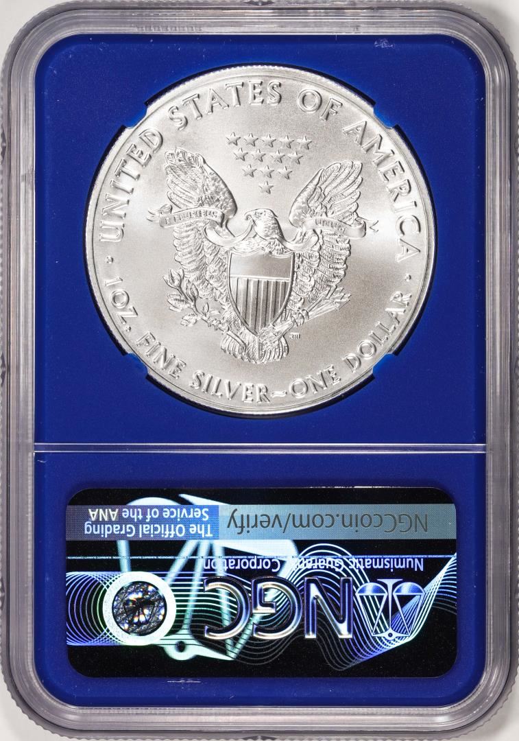One 2021(S) Type 1 $1 American Silver Eagle Coin NGC MS70 FDI San Francisco Blue Core. NGC Certified.
