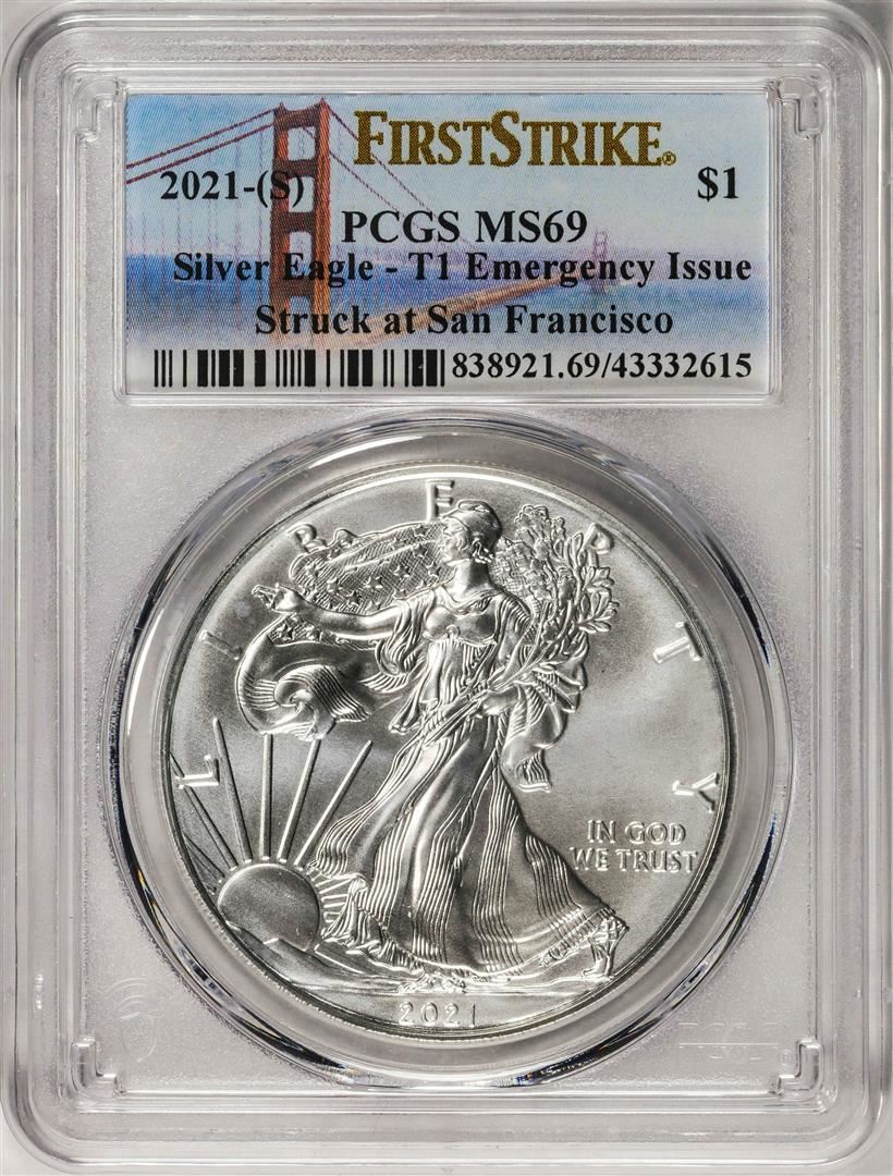 2021-(S) Type 1 $1 American Silver Eagle Coin PCGS MS69 First Strike Emergency Issue
