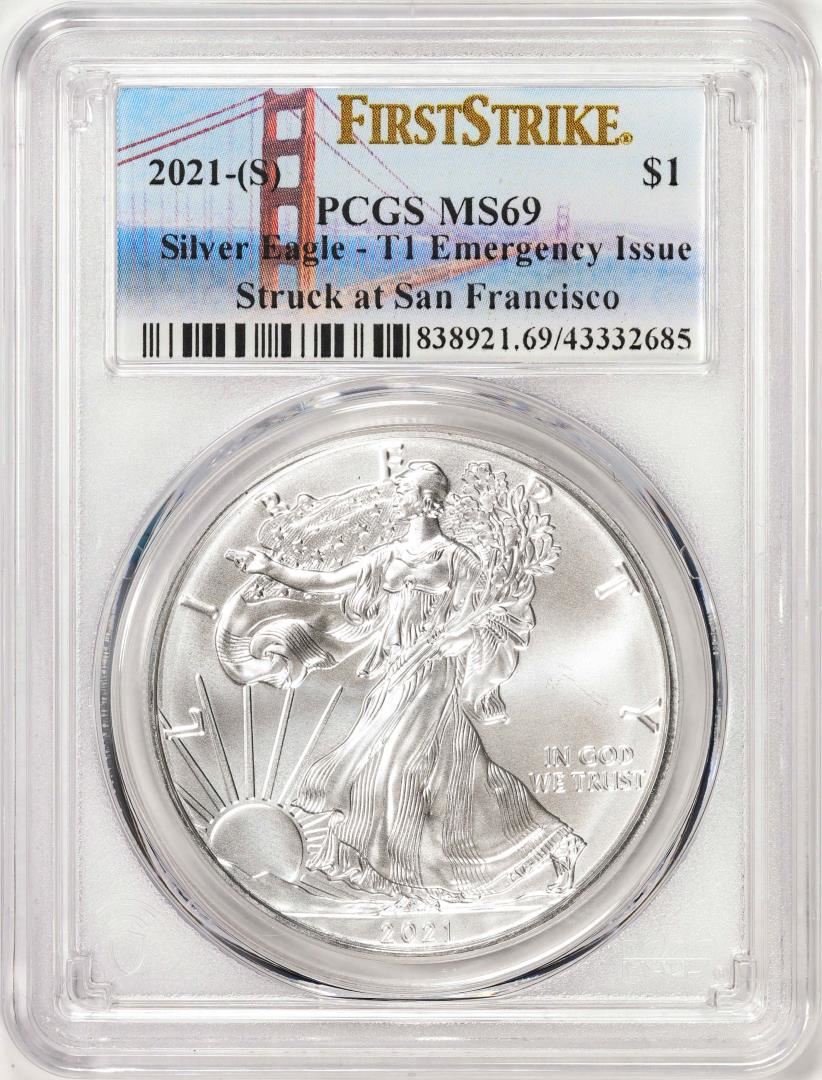 2021-(S) Type 1 $1 American Silver Eagle Coin PCGS MS69 First Strike Emergency Issue