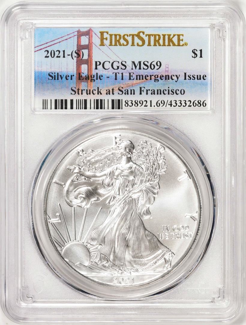 2021-(S) Type 1 $1 American Silver Eagle Coin PCGS MS69 First Strike Emergency Issue