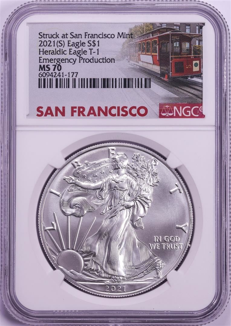 2021(S) Type 1 $1 Heraldic American Silver Eagle Coin NGC MS70 Emergency Issue