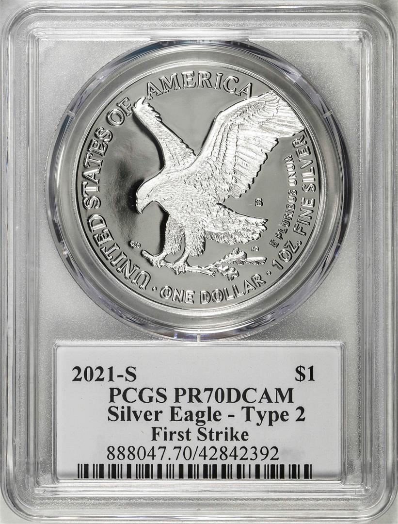 2021-S Type 2 $1 American Silver Eagle Coin PCGS PR70DCAM Emily Damstra Signature FS