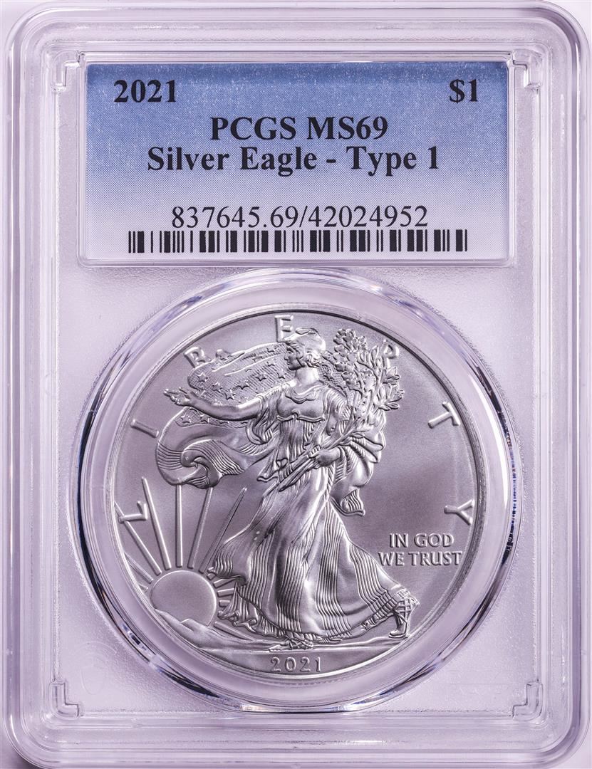 2021 Type 1 $1 American Silver Eagle Coin PCGS MS69