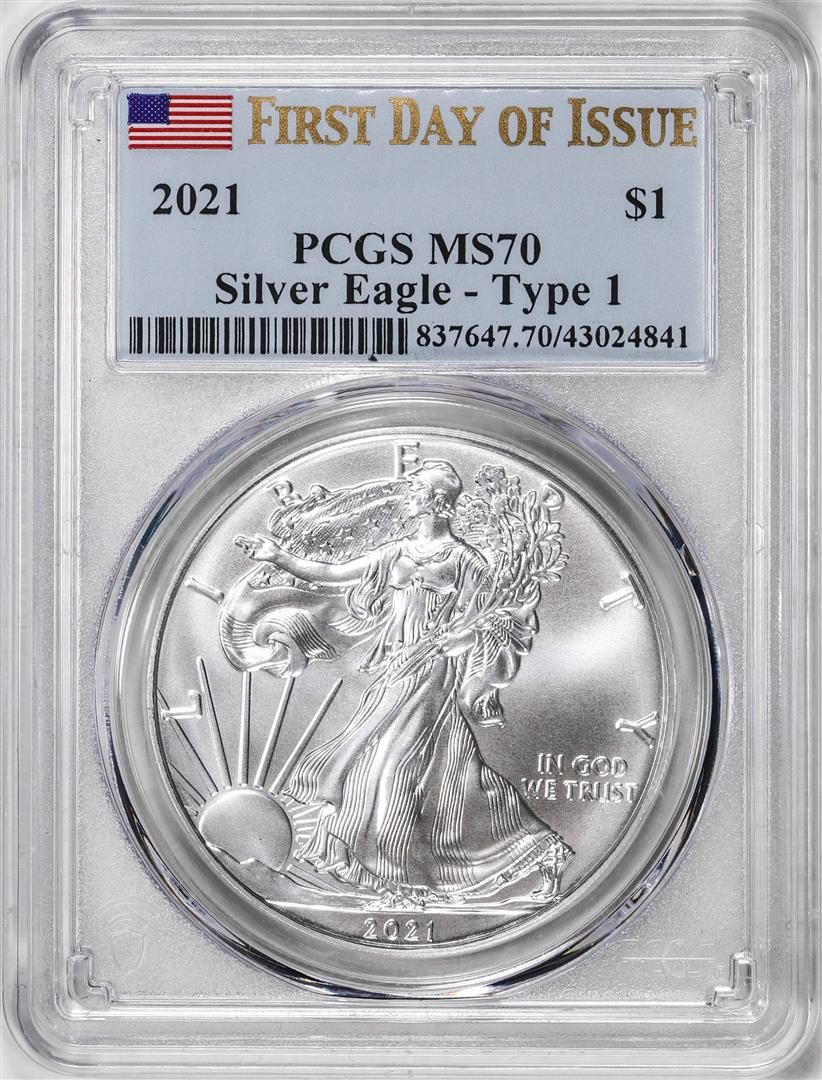 2021 Type 1 $1 American Silver Eagle Coin PCGS MS70 First Day of Issue