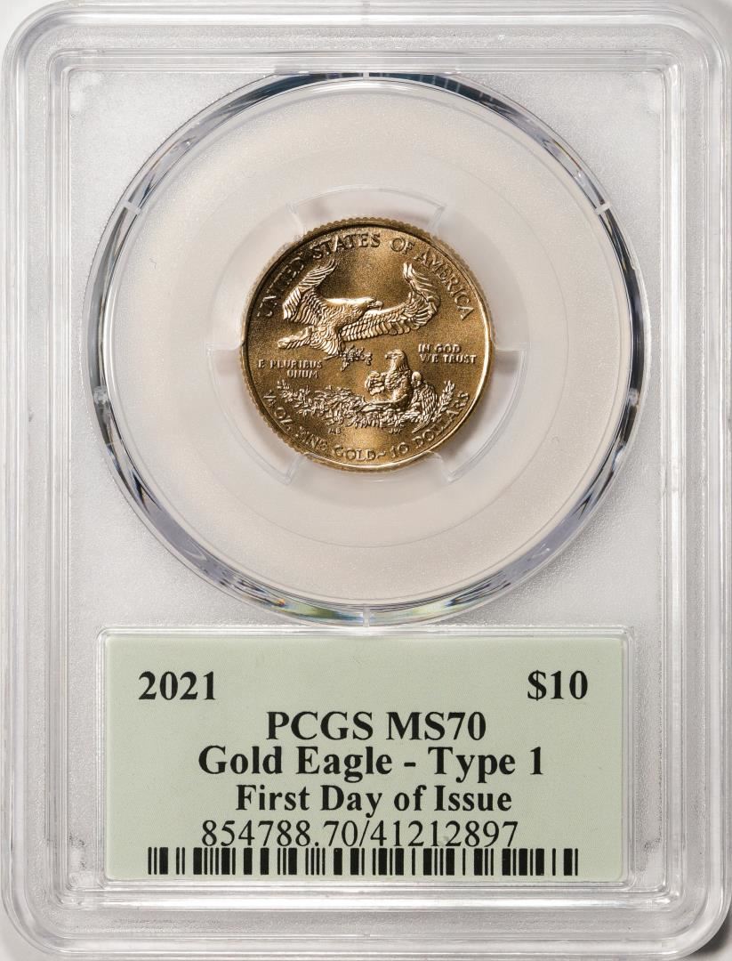One 2021 Type 1 $10 American Gold Eagle Coin PCGS MS70 FDOI Cleveland Signature. PCGS Graded.