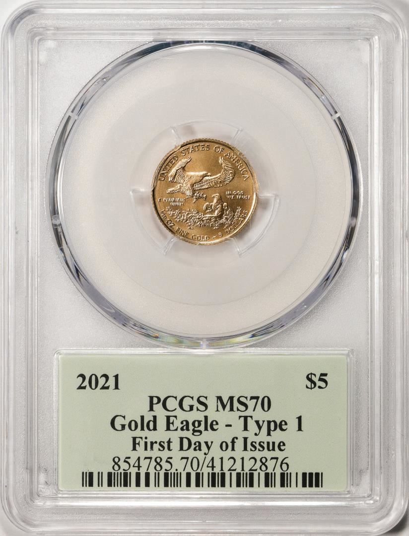 2021 Type 1 $5 American Gold Eagle Coin PCGS MS70 FDOI Cleveland Signature