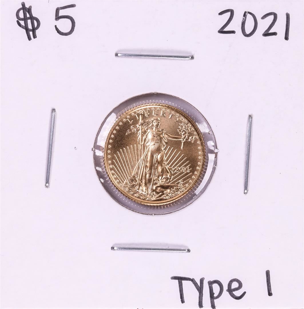One 2021 Type 1 $5 American Gold Eagle Coin.