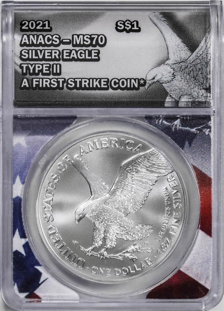 2021 Type 2 $1 American Silver Eagle Coin ANACS MS70 First Strike