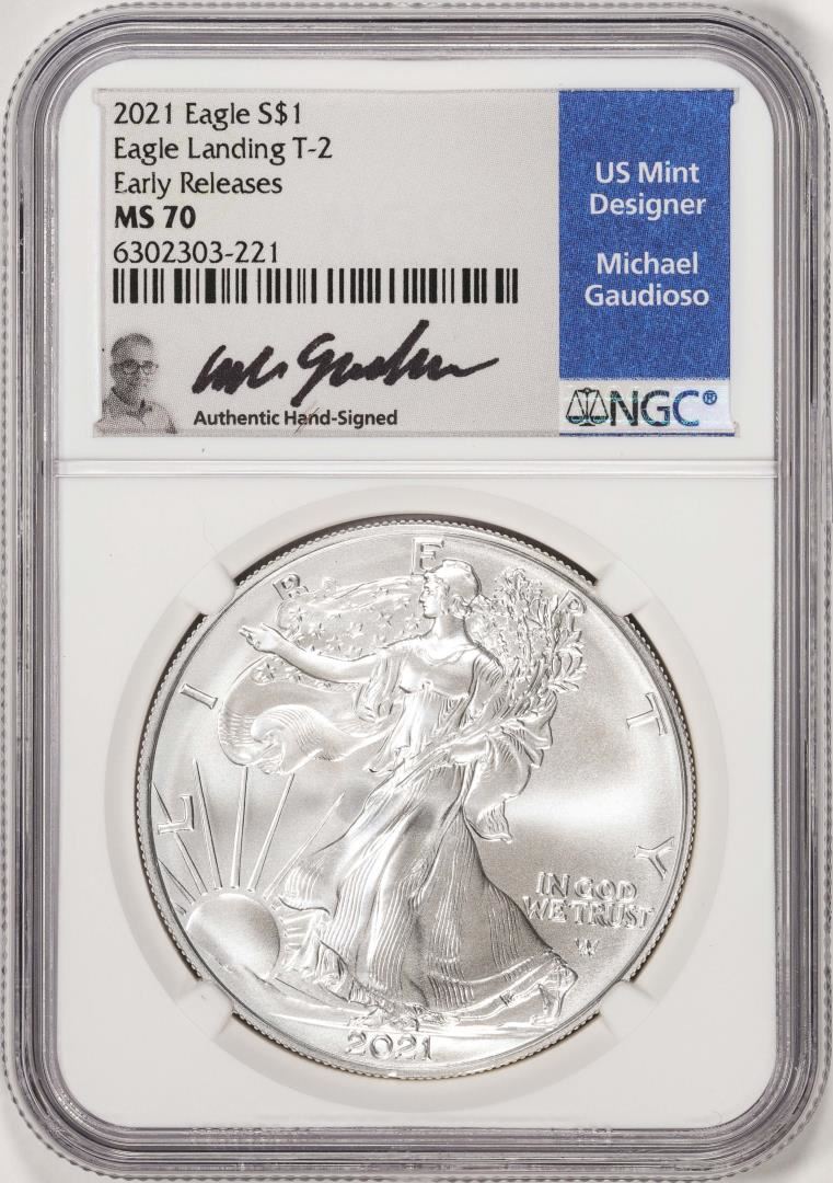2021 Type 2 $1 American Silver Eagle Coin NGC MS70 Early Releases Gaudioso Signature