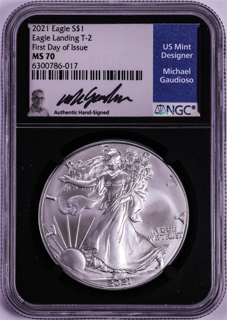 2021 Type 2 $1 American Silver Eagle Coin NGC MS70 First Day of Gaudioso Signature