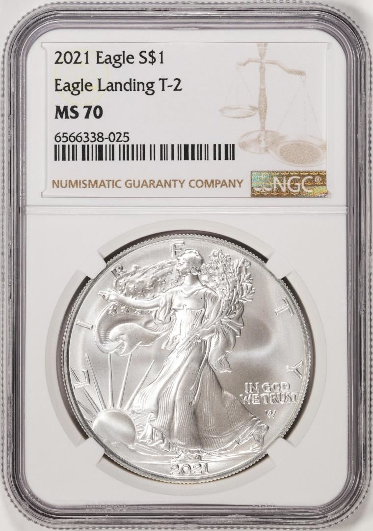 One 2021 Type 2 $1 American Silver Eagle Coin NGC MS70. NGC Certified.
