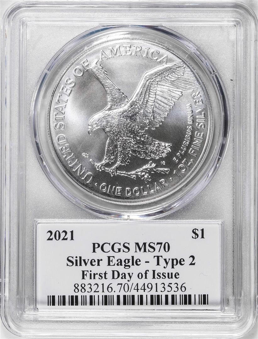 2021 Type 2 $1 American Silver Eagle Coin PCGS MS70 Cleveland Signature FDOI