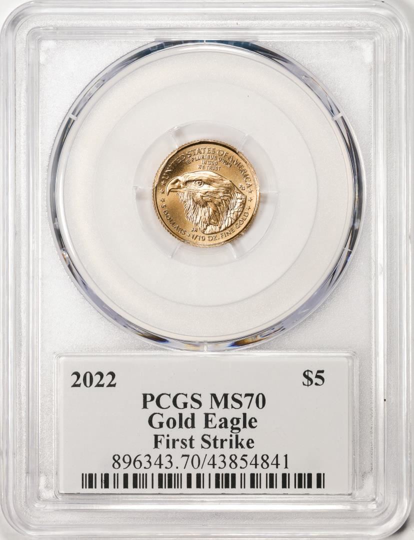 One 2022 $5 American Gold Eagle Coin PCGS MS70 First Strike. PCGS Graded.