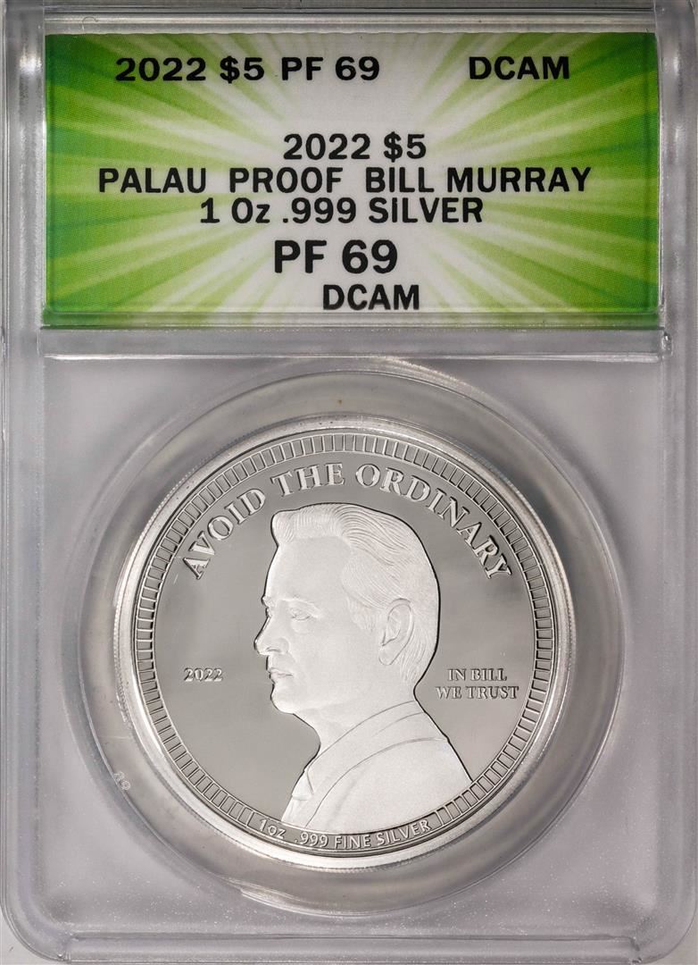 One 2022 $5 Palau Proof Bill Murray Silver Coin ANACS PF69DCAM. ANACS Certified.