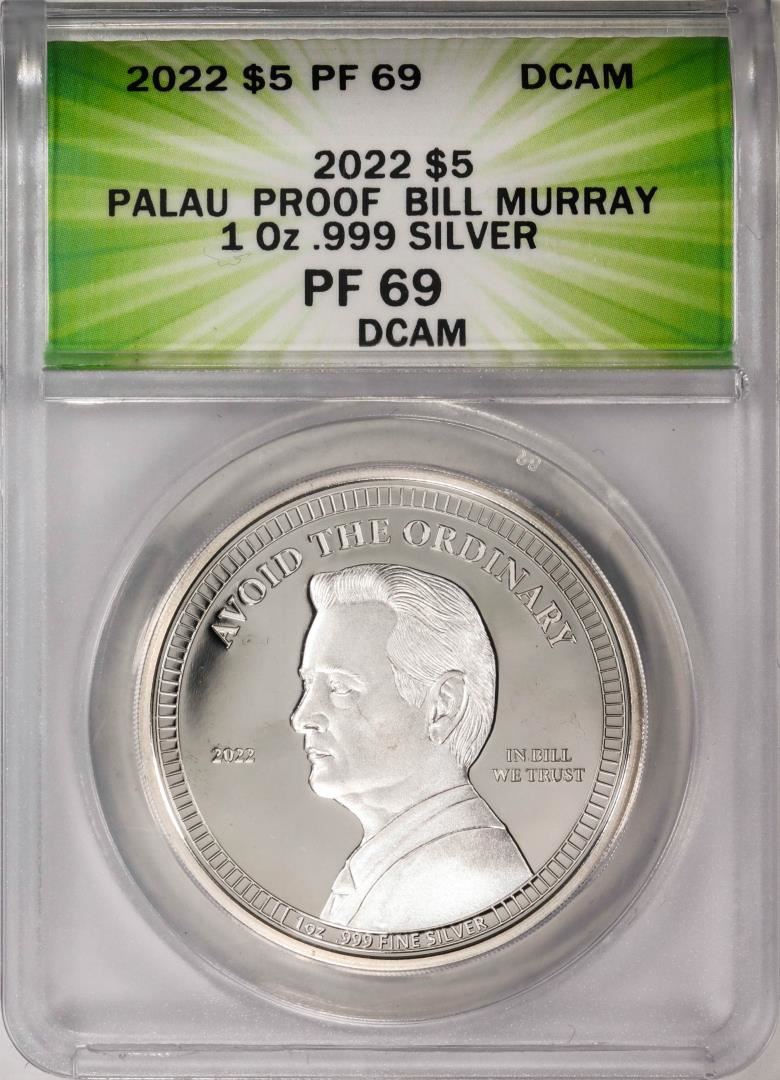 One 2022 $5 Palau Proof Bill Murray Silver Coin ANACS PF69DCAM. ANACS Certified.