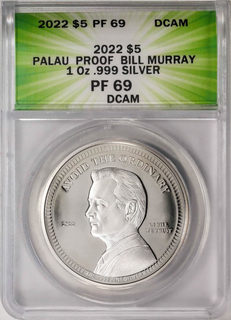 One 2022 $5 Palau Proof Bill Murray Silver Coin ANACS PF69DCAM. ANACS Certified.