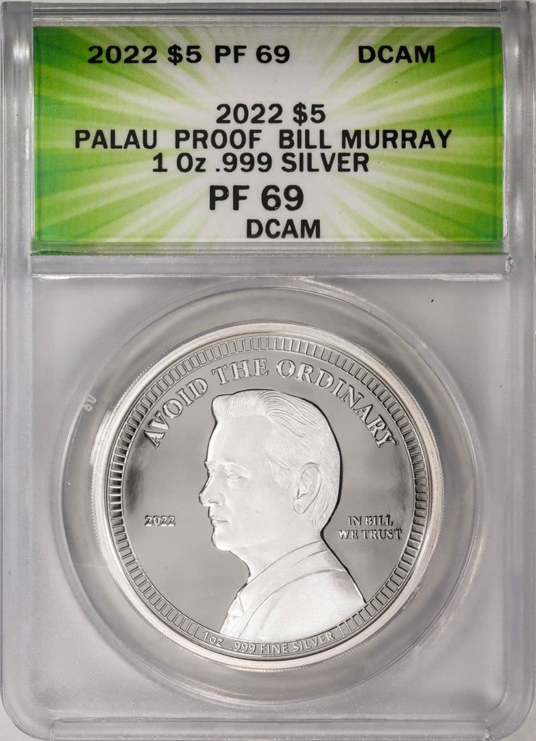 One 2022 $5 Palau Proof Bill Murray Silver Coin ANACS PF69DCAM. ANACS Certified.