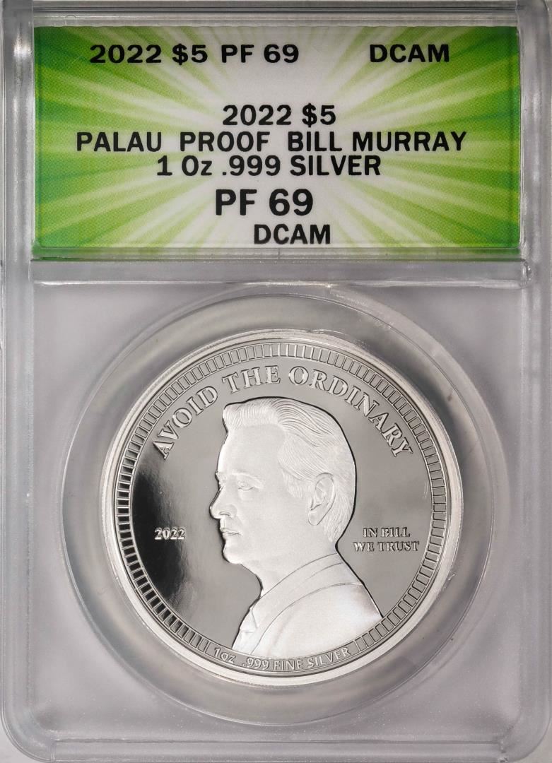 One 2022 $5 Palau Proof Bill Murray Silver Coin ANACS PF69DCAM. ANACS Certified.