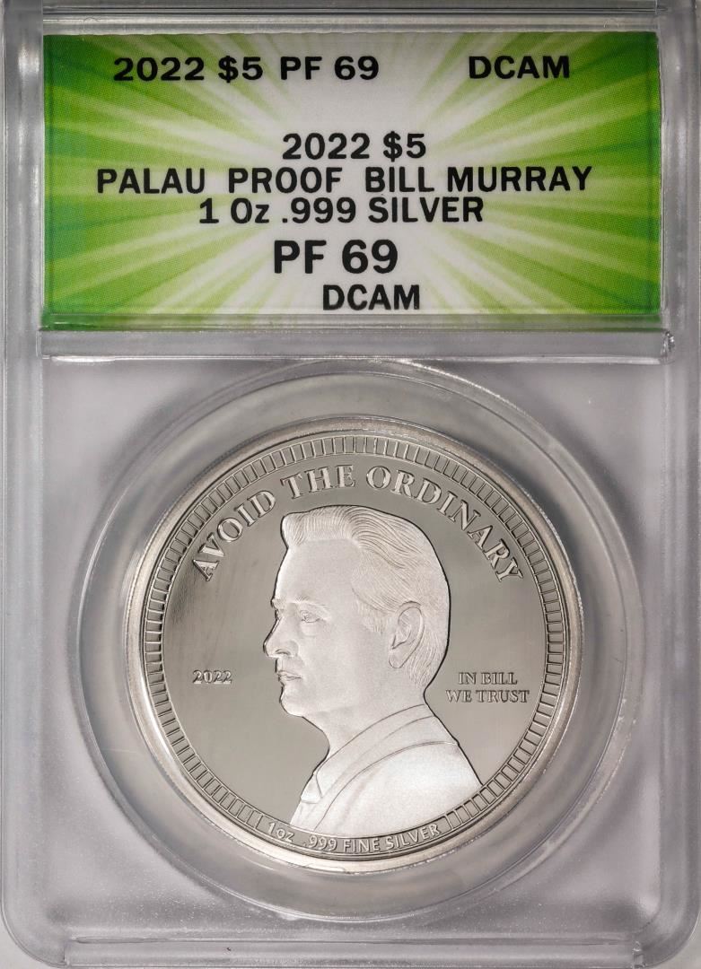One 2022 $5 Palau Proof Bill Murray Silver Coin ANACS PF69DCAM. ANACS Certified.
