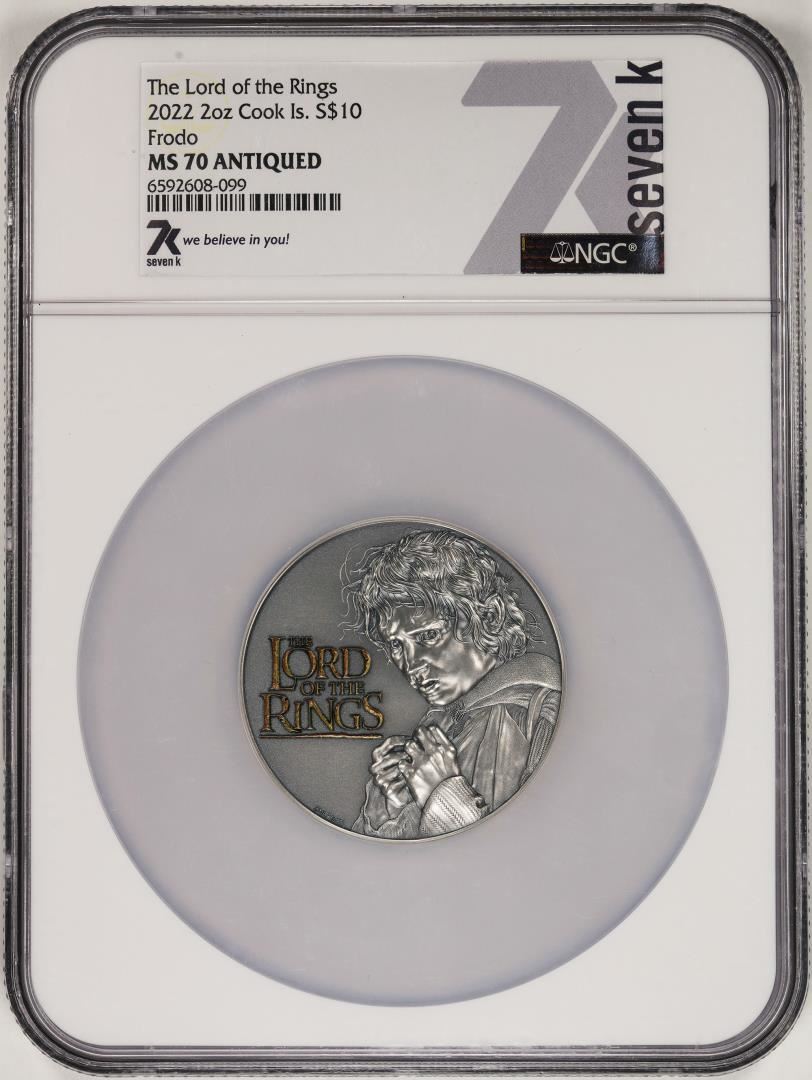 One 2022 Cook Islands $10 The Lord of the Rings Frodo 2oz Silver Coin NGC MS70 Antiqued. NGC Certified.