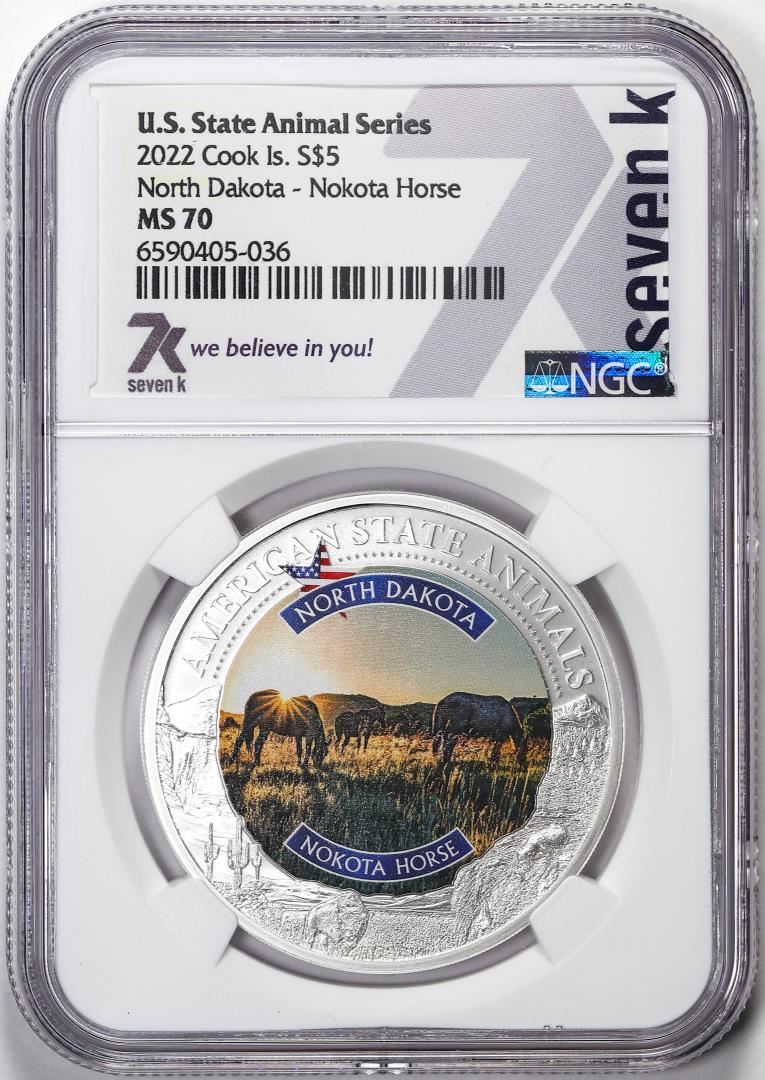 One 2022 Cook Islands $5 North Dakota Nokota Horse Silver Coin NGC MS70. NGC Certified.