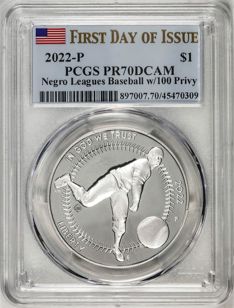 2022-P $1 Proof Negro Leagues Baseball Silver Dollar Coin PCGS PR70DCAM FDOI
