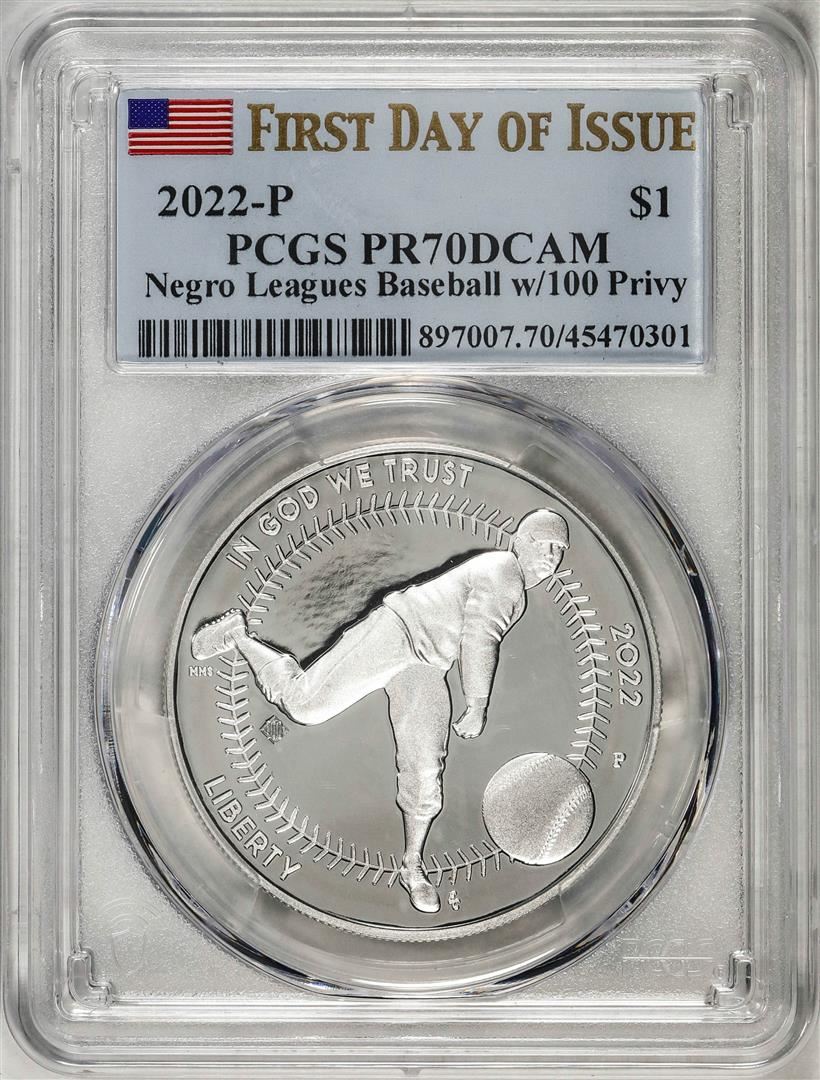2022-P $1 Proof Negro Leagues Baseball Silver Dollar Coin PCGS PR70DCAM FDOI