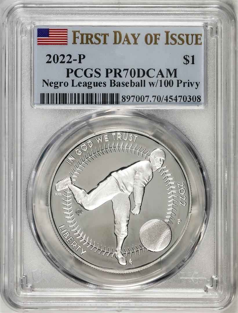 2022-P $1 Proof Negro Leagues Baseball Silver Dollar Coin PCGS PR70DCAM FDOI