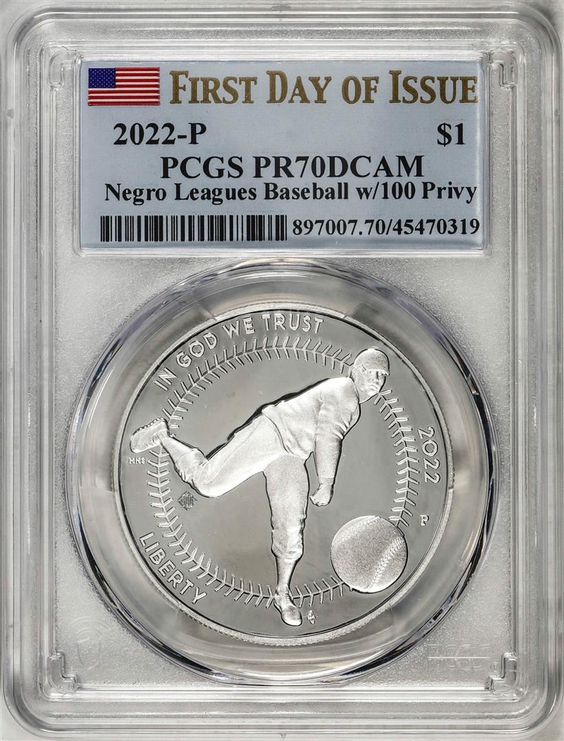 2022-P $1 Proof Negro Leagues Baseball Silver Dollar Coin PCGS PR70DCAM FDOI