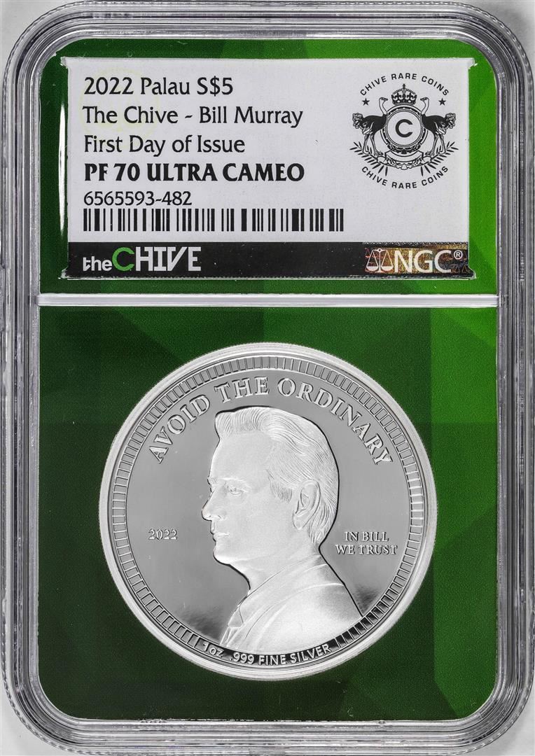 One 2022 Paulau $5 Proof The Chive Bill Murray Silver Coin NGC PF70 Ultra Cameo FDOI. NGC Certified.