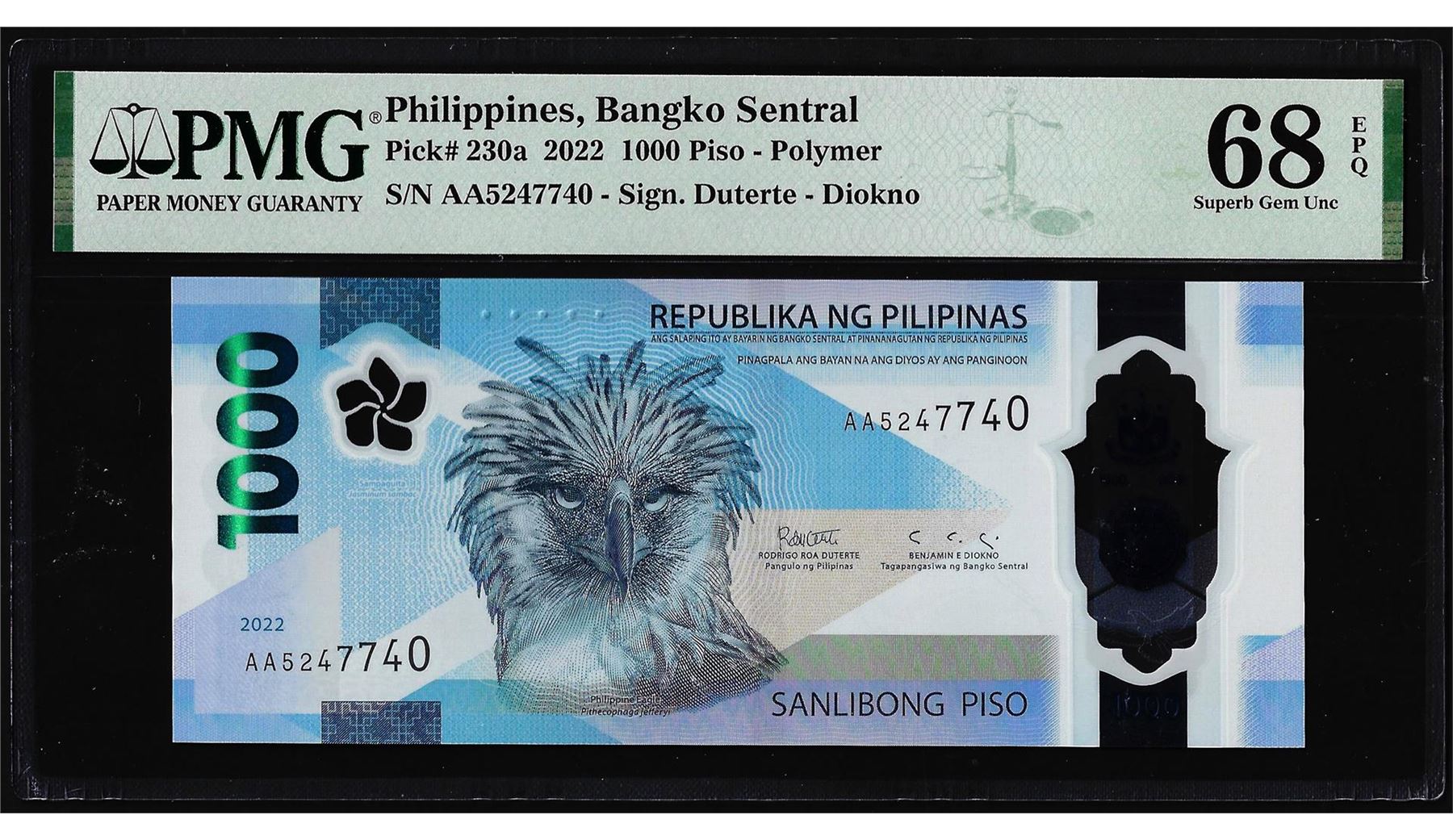 2022 Philippines Central Bank 1000 Piso Note P230a PMG Superb Gem Uncirculated 68EPQ