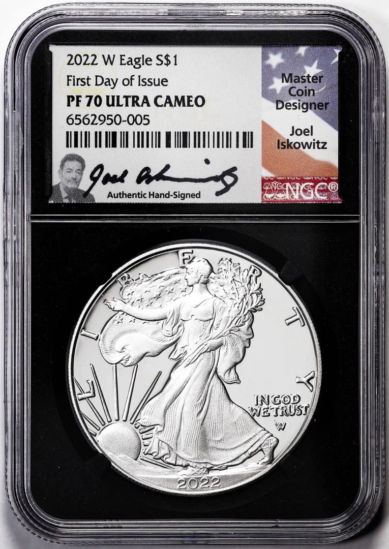 2022-W $1 Proof American Silver Eagle Coin NGC PF70 Ultra Cameo FDOI Iskowitz Signed