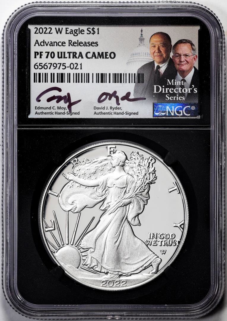 2022-W $1 Proof American Silver Eagle Coin NGC PF70 Ultra Cameo Moy & Ryder Signed