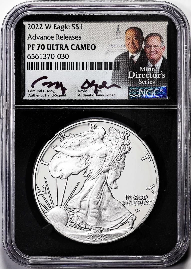 2022-W $1 Proof American Silver Eagle Coin NGC PF70 Ultra Cameo Moy & Ryder Signed