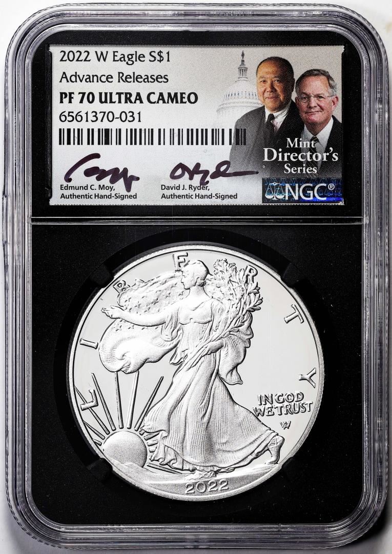 2022-W $1 Proof American Silver Eagle Coin NGC PF70 Ultra Cameo Moy & Ryder Signed