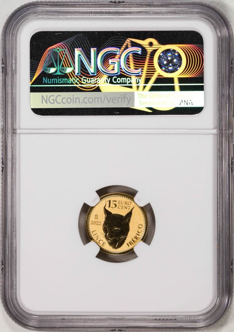 2022M Spain 15 Euro Cent Lynx Gold Doubloon Coin NGC MS69 FDOI