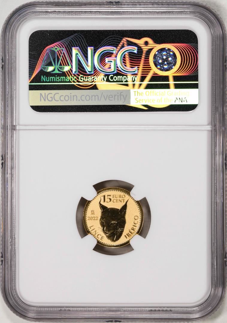 2022M Spain 15 Euro Cent Lynx Gold Doubloon Coin NGC MS69 FDOI