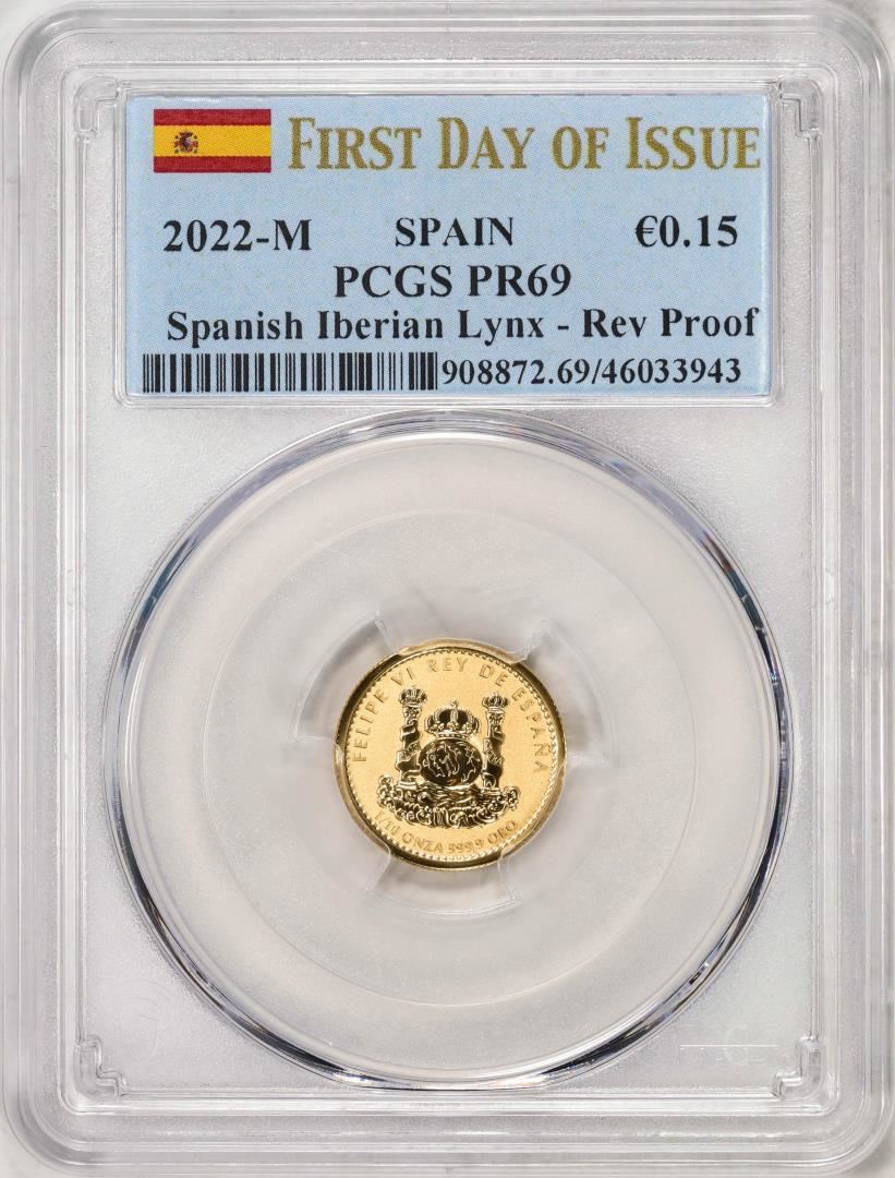 2022M Spain 15 Euro Cent Reverse Proof Lynx Gold Doubloon Coins PCGS PR69 FDOI