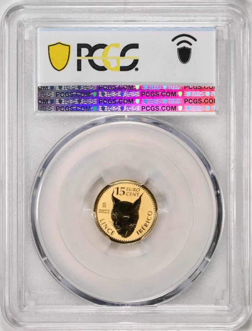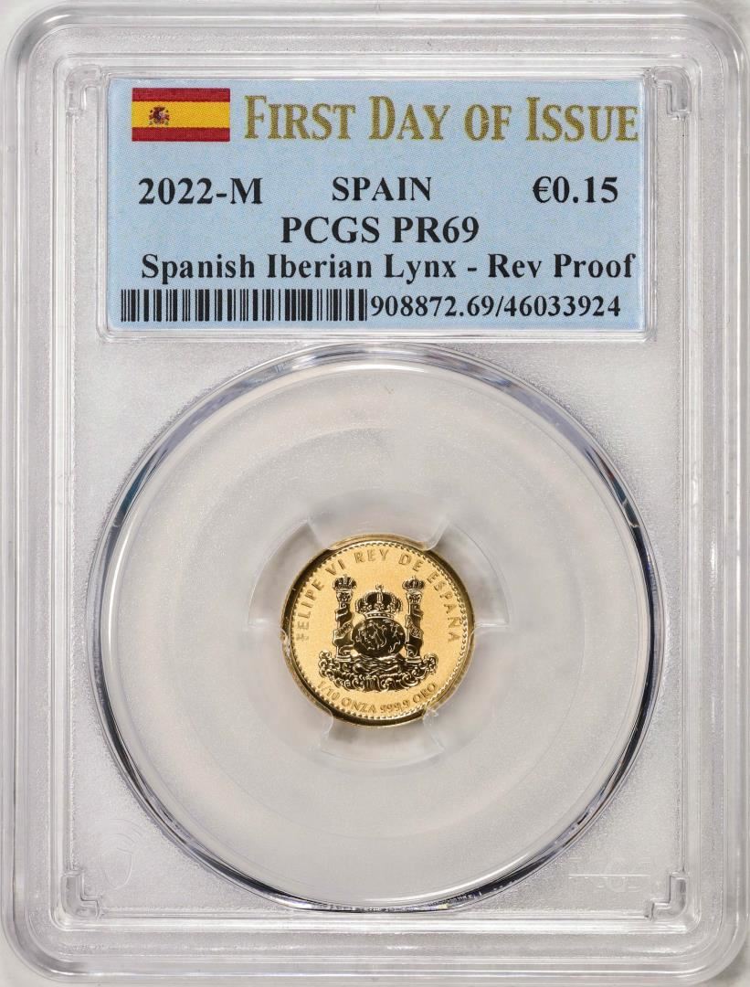 2022M Spain 15 Euro Cent Reverse Proof Lynx Gold Doubloon Coins PCGS PR69 FDOI