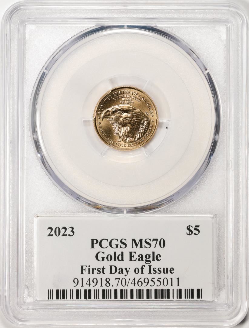 2023 $5 American Gold Eagle Coin PCGS MS70 First Day of Issue