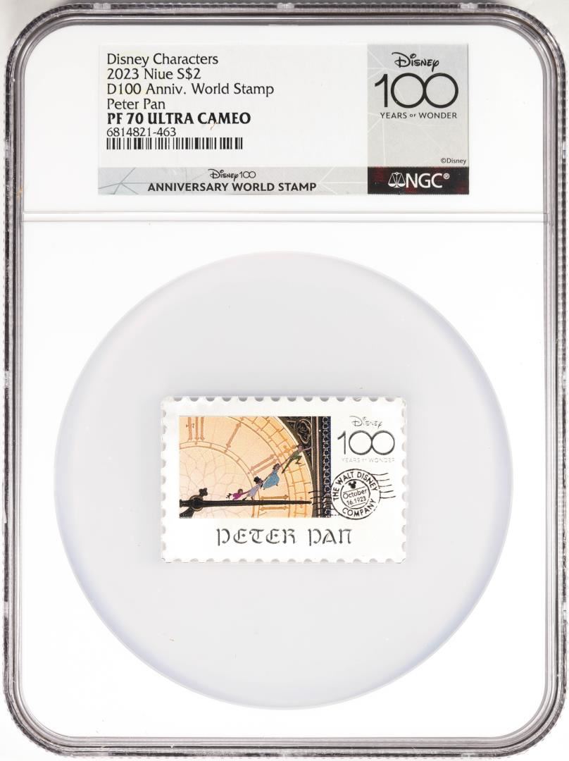 One 2023 Niue $2 Proof Disney Peter Pan 1 oz Silver NGC PF70 Ultra Cameo 100th Anniversary. NGC Certified.