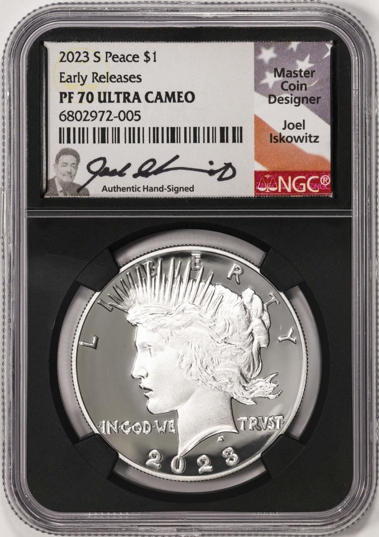 2023-S $1 Proof Peace Silver Dollar Coin NGC PF70 Ultra Cameo ER Iskowitz Signature