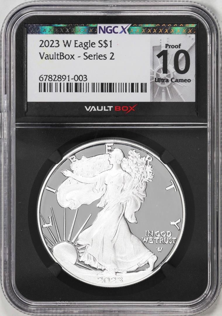 2023-W $1 American Silver Eagle Coin NGCX Proof 10 Ultra Cameo VaultBox Series 2
