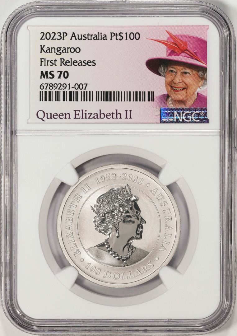One 2023P Australia $100 Kangaroo 1oz Platinum Coin NGC MS70 First Releases. NGC Certified.