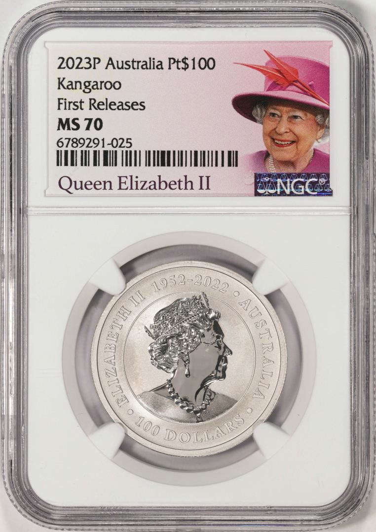 One 2023P Australia $100 Kangaroo 1oz Platinum Coin NGC MS70 First Releases. NGC Certified.