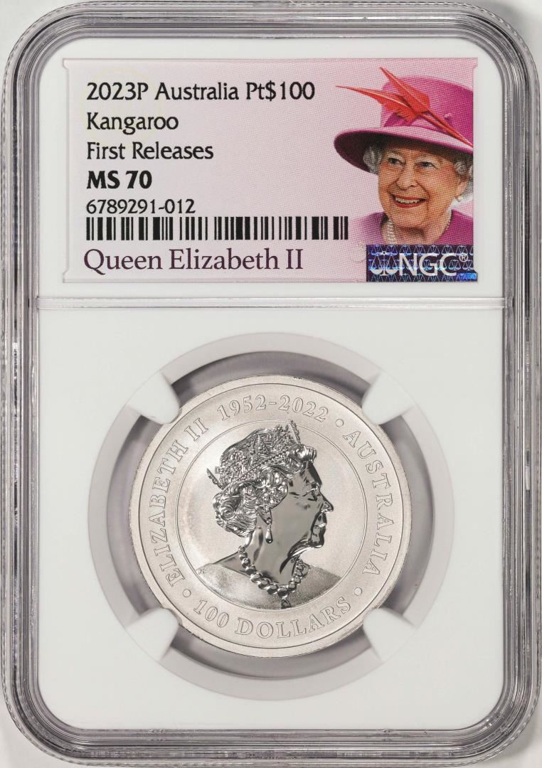 One 2023P Australia $100 Kangaroo 1oz Platinum Coin NGC MS70 First Releases. NGC Certified.