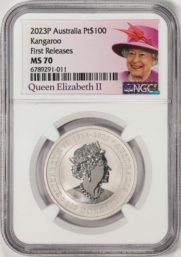 One 2023P Australia $100 Kangaroo 1oz Platinum Coin NGC MS70 First Releases. NGC Certified.